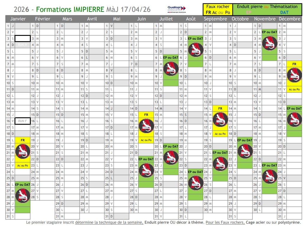 Nous partageons notre savoir-faire et proposons des stages selon 4 techniques : Enduit pierre – Thématisation – Rocaille – Scénographie.